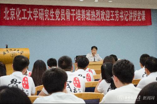 为进一步学习宣传贯彻党的十九大精神,在纪念中国共产党成立97周年之际,7月4日,我校党委书记王芳在中心会议室以“不忘初心 牢记使命 努力成为新时代的追梦人”为题,为我校研究生党员骨干培养班、全体一年级研究生党支部书记讲授专题党课。党课由党委研工部副部长王陶冶主持。